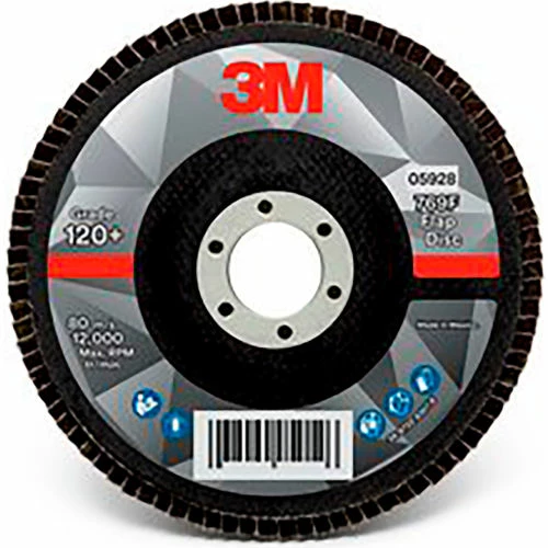 3M Flap Disc 769F, 05928, T27, 5" x 7/8 in, 120+ FY YF-weight, 10 Per Case – Pkg Qty 10