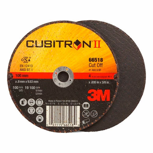3M™ Cubitron™ II Cut-Off Wheel features 3M Precision Shaped Ceramic Grain to bring you an exceptionally fast-cutting and long-lasting wheel for use on almost all materials, including stainless steel, mild steel, and aerospace alloys. This cut-off wheel surpasses 3M™ High Performance wheels in both cut and life to deliver significant gains in productivity.