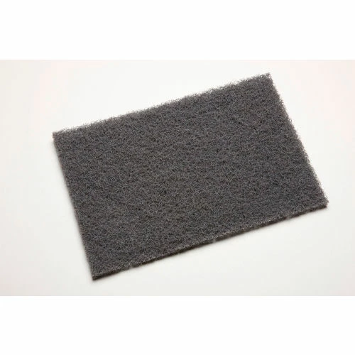 Our Scotch-Brite™ Blending Hand Pad combines load resistance and uniform wear to provide a consistent cut-rate throughout the life of the pad. The 6 x 9 Blending Hand Pad can be used by hand for precise control, with a hand pad holder for uniform finishing, or on an inline sander to cover larger areas. This gray pad is filled with silicon carbide abrasive mineral, a synthetic mineral that is very sharp and commonly used for low-pressure applications such as paint prep. While it breaks down faster than aluminum oxide, it produces a superior finish. Our Scotch-Brite™ abrasives are unique surface conditioning products with abrasives incorporated into non-woven fiber matrix. Combining abrasives and non-woven material creates an abrasive system that delivers consistent results for the life of the product. The open-web material runs cool and is load resistant, which keeps the abrasive minerals cutting at high performance by limiting clogging of the fibers.
