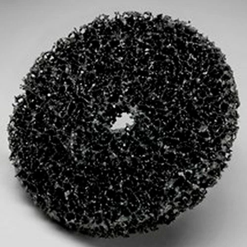 An Abrasive for High-Production Environments Scotch-Brite™ ; Clean and Strip Disc has all the benefits operators have come to expect from Scotch-Brite™ ; abrasives, including good load resistance and consistent cutting action. In fact, its ability to withstand debris makes it a good match for high-production environments and projects that generate a lot of dust, such as coating and corrosion removal. Scotch-Brite™ ; Clean and Strip Disc features a standard attachment system and may be connected to a backstand, right angle grinder or die grinder. Silicon Carbide Mineral Cuts Sharp and Leaves a Bright Finish Nylon fibers on Scotch-Brite™ ; Clean and Strip Disc are interspersed with extra-coarse (XCS) silicon carbide mineral. We chose extra-coarse (XCS) mineral, because it cuts more aggressively than minerals in a finer grade. Among synthetic minerals, silicon carbide is one of the sharpest. It breaks down faster than aluminum oxide but leaves a finer finish. The Many Benefits of Scotch Brite™ ; Abrasives As a Scotch-Brite™ ; product, this disc is engineered with open nylon web, which is why it such a great match for cleaning welds, removing rust and stripping paint. The gaps between nylon fibers permit debris to escape. The benefits of this are twofold. First, it enhances the abrasive’s ability to withstand loading. Second, because the abrasive does not get clogged with debris as easily, it has prolonged service life. The nylon fibers break down continuously during grinding, revealing fresh mineral for ongoing sharp cutting action and consistent finishes – part after part.