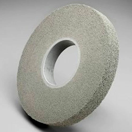 The finished result is a clean surface without smearing, reducing the need for additional clean up and preparation. Convolute construction and clean, uniform wear keep the wheel running smoothly and help the operator attain a professional finish while minimizing fatigue. Our Scotch-Brite material runs cool and provides the EXL Deburring Wheel with uniform wear and keeps fresh abrasives continuously exposed, making it a superior choice on heat sensitive substrates. The toughness of the wheel extends its service life. Scotch-Briteâ„¢ EXL Deburring Wheel is available with silicon carbide or aluminum oxide abrasive mineral. Silicon carbide is a synthetic mineral that is very sharp and commonly used for low-pressure applications such as paint prep and finishing. Aluminum oxide is a hard, blocky mineral that provides high cut-rate and long life. While silicon carbide breaks down faster than aluminum oxide, it produces a finer finish. Scotch-Briteâ„¢ is a unique surface conditioning product with abrasives incorporated into non-woven nylon fibers. Combining abrasives with the fibers creates an abrasive system that delivers consistent results for the life of the product. The open-web material is load resistant and keeps the abrasive minerals cutting at high performance by limiting clogging of the nylon fibers.