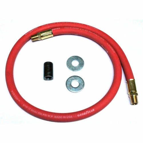 Air hose kit; Fits all ALC polymer cabinets; 36″ Goodyear hose; 1/4″ NPT fittings; Connects siphon gun to air supply