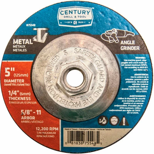 Century Drill & Tool Century Drill 75548 Depressed Center Grinding Wheel 5" x 5/8-11" Type 27 Aluminum Oxide