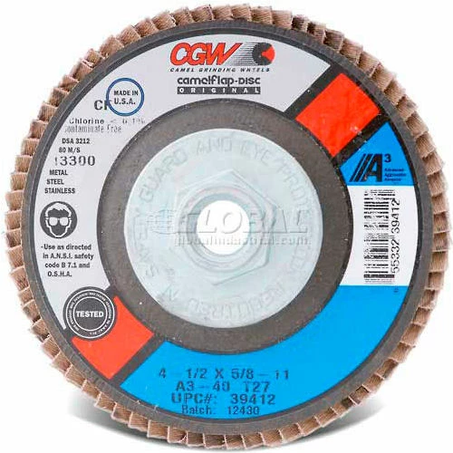 CGW Abrasives 39254 Abrasive Flap Disc 4" x 3/8 – 24" 60 Grit Aluminum Oxide – Pkg Qty 10