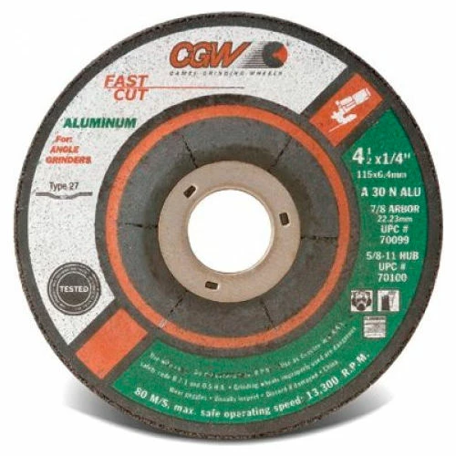 CGW Abrasives 70104 Depressed Center Wheel 7" x 1/4" x 5/8- 11 INT Type 27 30 Grit Aluminum Oxide – Pkg Qty 10
