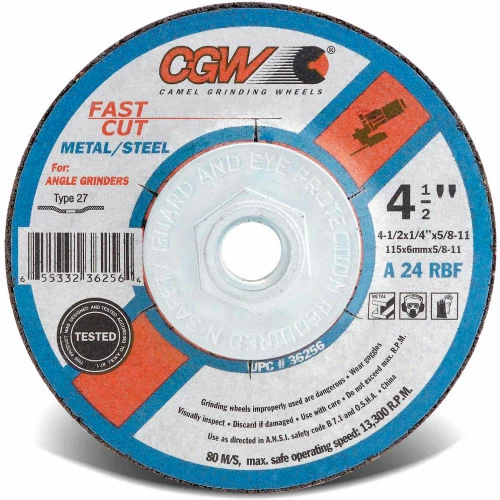 Be the first to review “CGW Abrasives Grinding Wheel, 4-1/2" Dia. x 1/4" Thick x 5/8-11" Aluminum Oxide, Steel, Fast Cut – Pkg Qty 10” Cancel reply