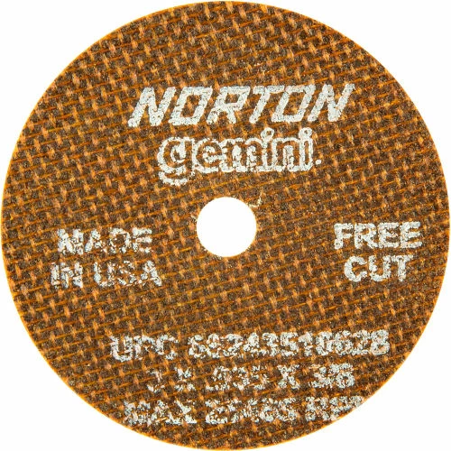 The Norton small diameter cut-off wheel line consists of Type 01, Type 01/41 straight and Type 27/42 depressed center cut-off wheels from 1-1/2″ to 9″ diameters. These wheels come in ultra thin .035 for quick burn-free and burr-free cutting to .125″ for more durable applications. All are reinforced for the demanding nature of portable cut-off. Quality A/O -For cutting alloys, steels/ferrous metals. Full fiberglass reinforcement-Straight., stable cuts. Fast, burr-free cutting, low kerf loss