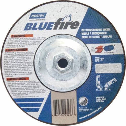 Depressed center wheels may also be referred to as raised hub wheels or by their shape designation of “Type”, with Type 27 being the most popular. The depressed center design allows the flange/lock nut to recess within the wheel so that it can be used for various grinding and cutting applications. Depressed center wheels are designed to handle the most severe right angle grinding applications from heavy stock removal to rough blending. More recently, depressed center wheels have been designed to increase the utility of the tool for cut-off applications. While large right angle grinders (7″ & 9″) have been around for many years, small or mini grinders that handle 4″, 4-1/2″ and 5″ wheels have made this machine, and wheel category, the most popular in power tools. 2-3x the life of A/O wheels -20% increase in performance/life -For offhand cut-off, notching, cleaning pipes and weld beads -For foundry applications