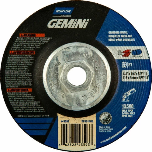 Depressed center wheels may also be referred to as raised hub wheels or by their shape designation of “Type”, with Type 27 being the most popular. The depressed center design allows the flange/lock nut to recess within the wheel so that it can be used for various grinding and cutting applications. Depressed center wheels are designed to handle the most severe right angle grinding applications from heavy stock removal to rough blending. More recently, depressed center wheels have been designed to increase the utility of the tool for cut-off applications. While large right angle grinders (7″ & 9″) have been around for many years, small or mini grinders that handle 4″, 4-1/2″ and 5″ wheels have made this machine, and wheel category, the most popular in power tools. Consistent performance/competitive price -Fast cut -Excellent wheel life