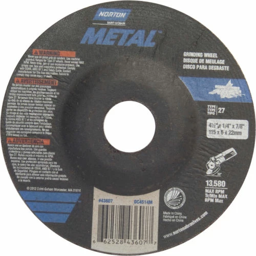 Depressed center wheels may also be referred to as raised hub wheels or by their shape designation of “Type”, with Type 27 being the most popular. The depressed center design allows the flange/lock nut to recess within the wheel so that it can be used for various grinding and cutting applications. Depressed center wheels are designed to handle the most severe right angle grinding applications from heavy stock removal to rough blending. More recently, depressed center wheels have been designed to increase the utility of the tool for cut-off applications. While large right angle grinders (7″ & 9″) have been around for many years, small or mini grinders that handle 4″, 4-1/2″ and 5″ wheels have made this machine, and wheel category, the most popular in power tools. Quality A/O -For stock removal, smoothing welds and beveling -Best mix of cut rate/life -Good choice when low initial price is critical