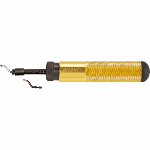 Shaviv by Vargus is the original hand deburring tool in the market since the 1960’s and is today distributed all over the world. Shaviv is the answer to unwanted burrs on a wide variety of materials such as metal, plastics, wood and more. Wherever the burr, Shaviv has the tool in its extensive range to solve your problem. Look to Shaviv for the tools to do the finishing problems that a machine just can’t handle. With Shaviv there is no downtime, so you increase your productivity. Shaviv Part 155-29066 Set Includes 1 Classic Aluminum A Handle, 1 B Blade Holder, and 2 styles of “B” Blades (B10 & B20)