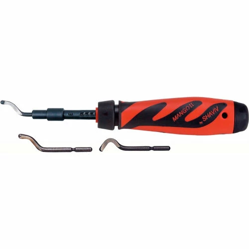 Shaviv by Vargus is the original hand deburring tool in the market since the 1960’s and is today distributed all over the world. Shaviv is the answer to unwanted burrs on a wide variety of materials such as metal, plastics, wood and more. Wherever the burr, Shaviv has the tool in its extensive range to solve your problem. Look to Shaviv for the tools to do the finishing problems that a machine just can’t handle. With Shaviv there is no downtime, so you increase your productivity. Shaviv Part 155-90065 Set Includes 1 Ergonomic Style Mango II Handle, 1 E Blade Holder, and 3 styles of “E” Blades (E100, E200 E300)