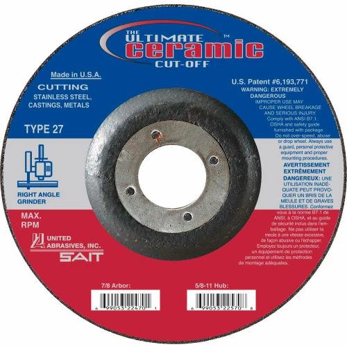 United Abrasives – Sait 22470 Depressed Center Wheel T27 4-1/2″x .045″ x 7/8″ Ceramic Alum.